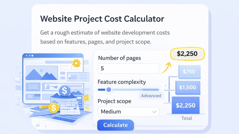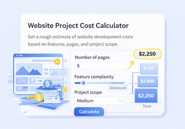 Get a rough estimate of website development costs based on features, pages, and project scope.